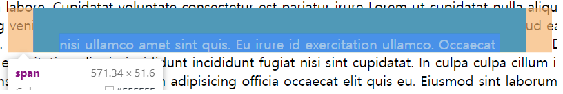 p태그의 더미 텍스트안에 대표적인 inline태그인 span 태그를 사용하여 특정 문장을 강조하는 표시를 나타냈습니다.
