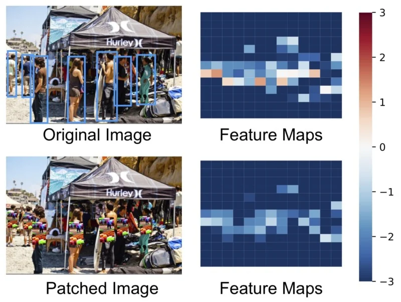 위 사진은 그 결과로, 이미지에서 사람을 찾는 Object Detector 모델에서 중앙의 특정 패턴이 존재하는 옷을 입은 사람은 검출하지 못하는 것을 볼 수 있다.