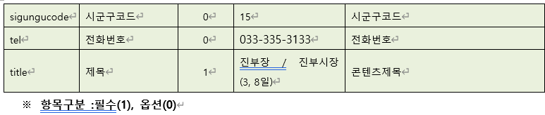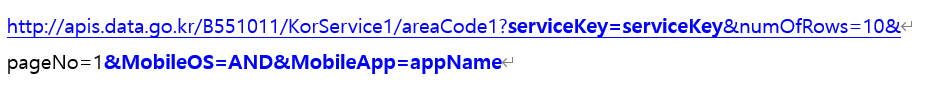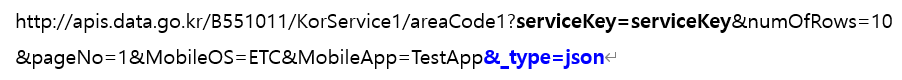 이때 지역정보는 지역코드 조회 서비스