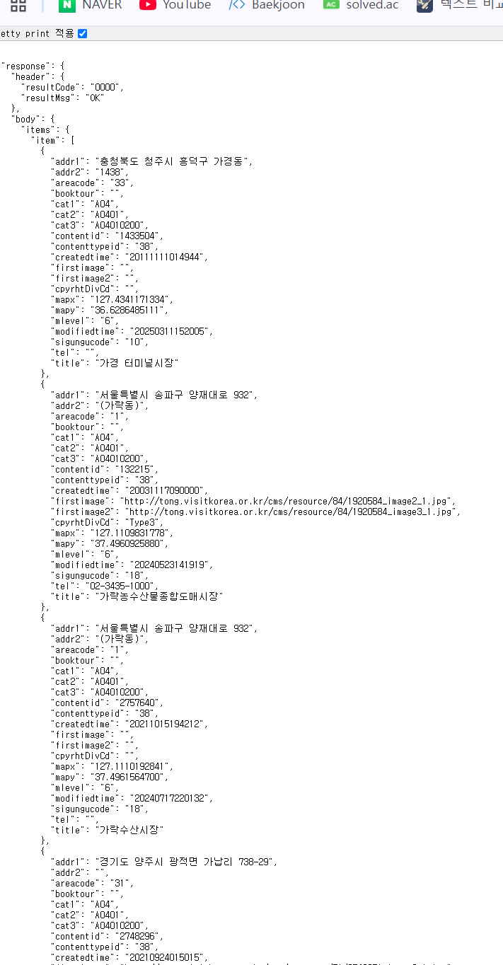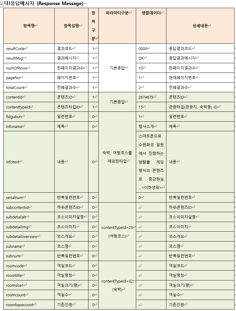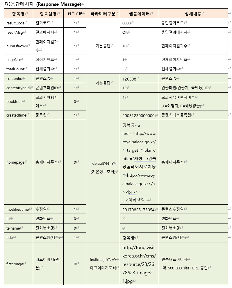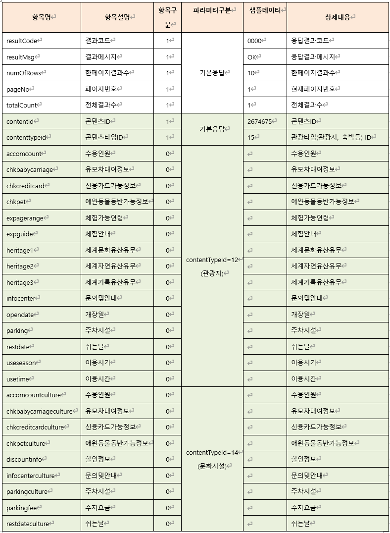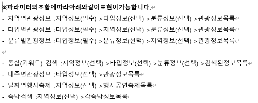 파라미터를 조합해서 다양한 방식으로 관광 정보를 조회할 수 있다