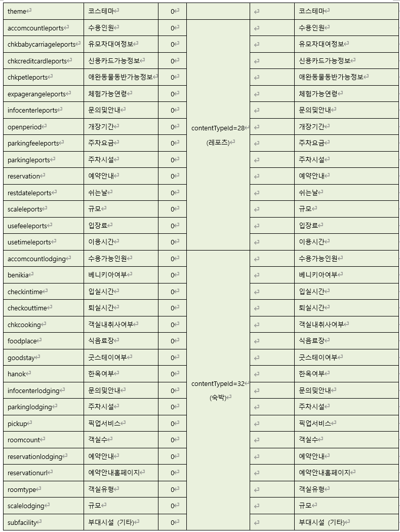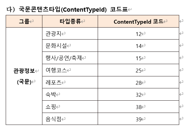관광지, 숙박 등 콘텐츠 유형(contentTypeId)