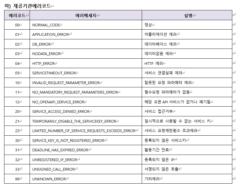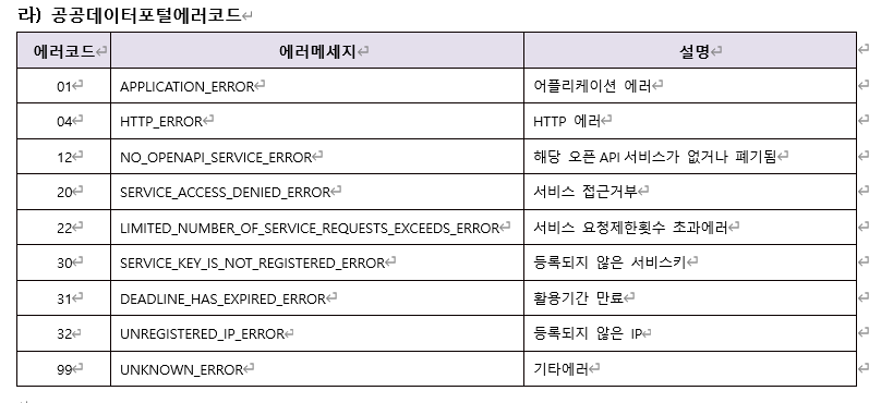 공공데이터포털에러코드