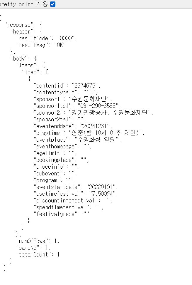 위와 같이 요청을 하면 아래와 같은 정보를 받아 볼 수 있다.
