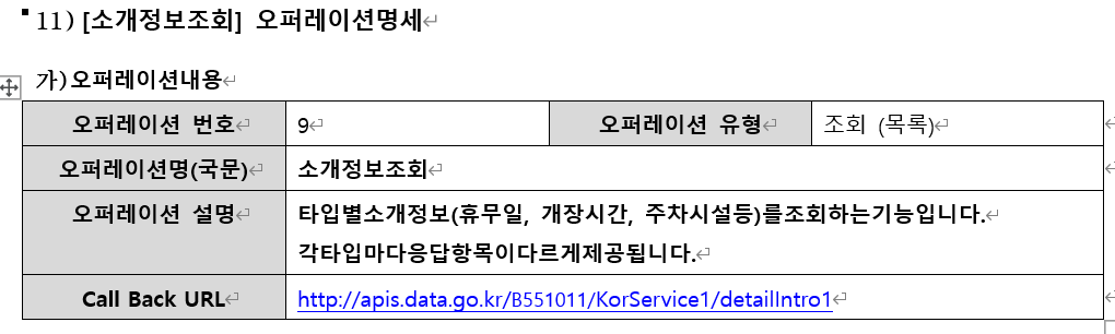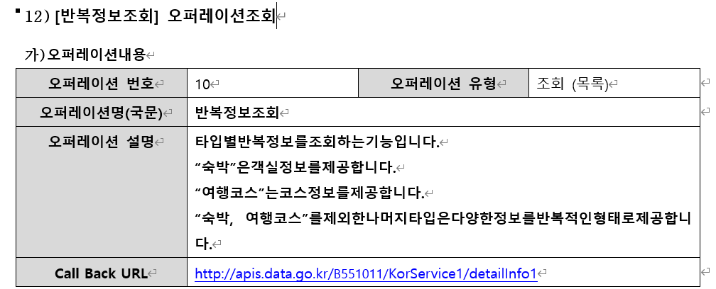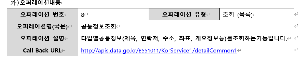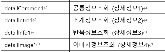 이거를 통해서 공통정보, 소개정보, 반복정보, 이미지정보 얻을 수 있다는게 참 아쉽다!