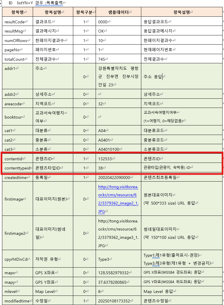 contentTypeId (관광타입 ID) = 키워드 기반 조회를 통해 얻은 관광타입 ID