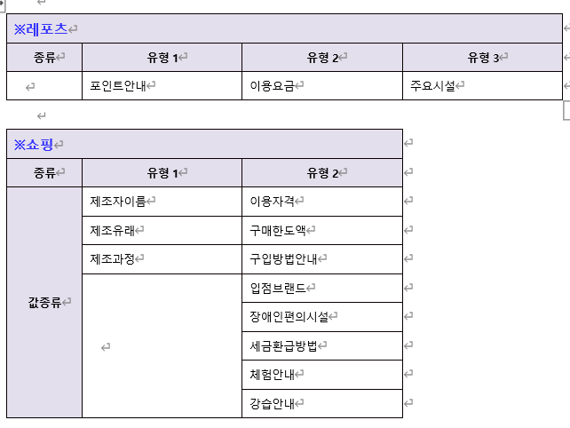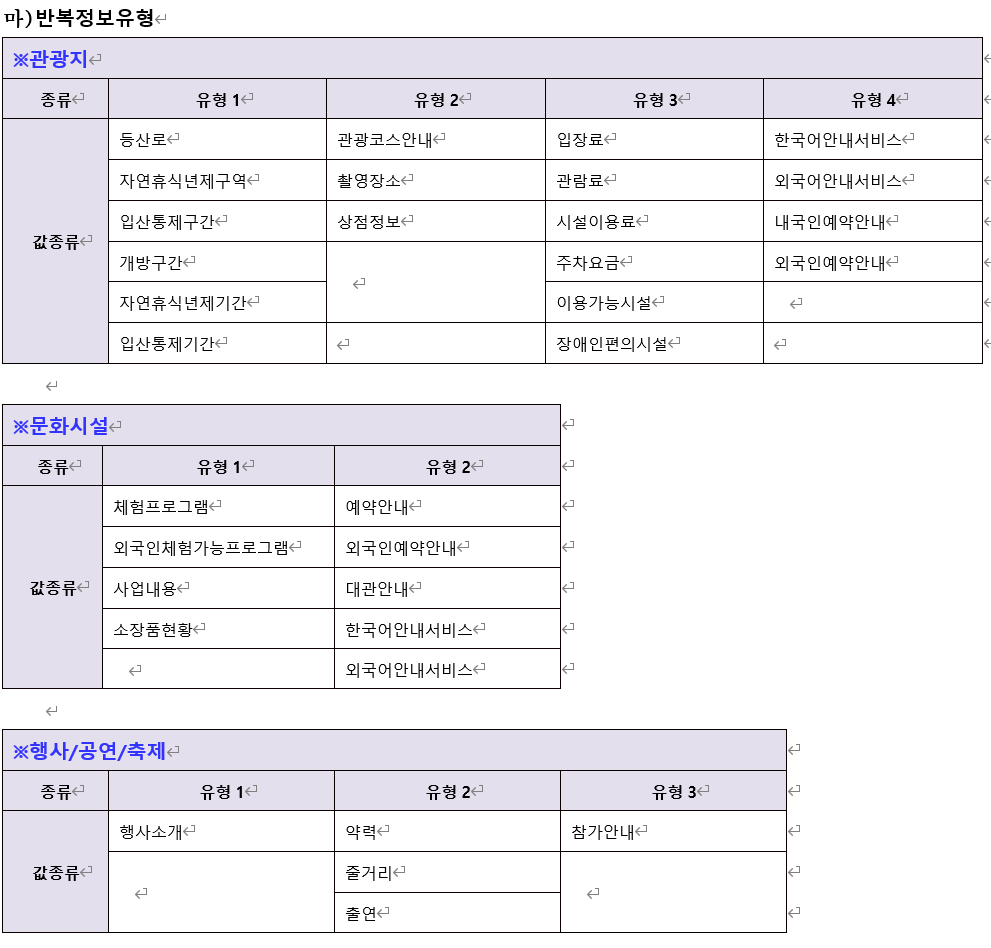 → 안내/객실/프로그램 등의 반복 정보