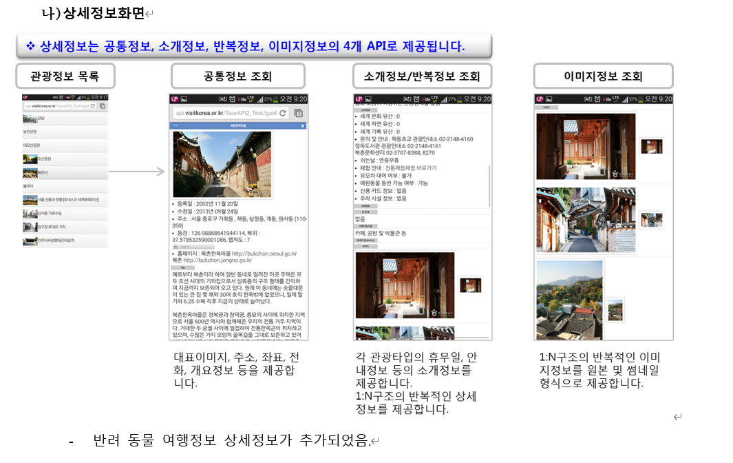 상세정보는 공통정보, 소개정보, 반복정보, 이미지정보의 4개 api로 제공된다.