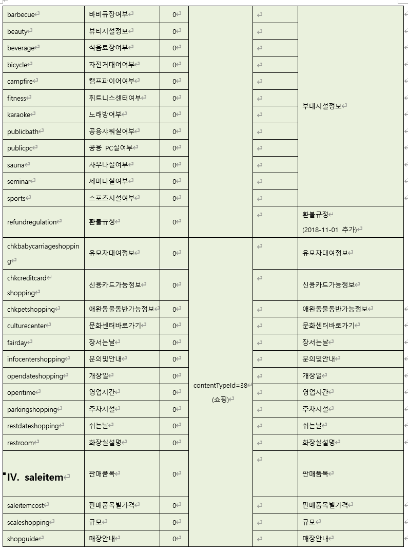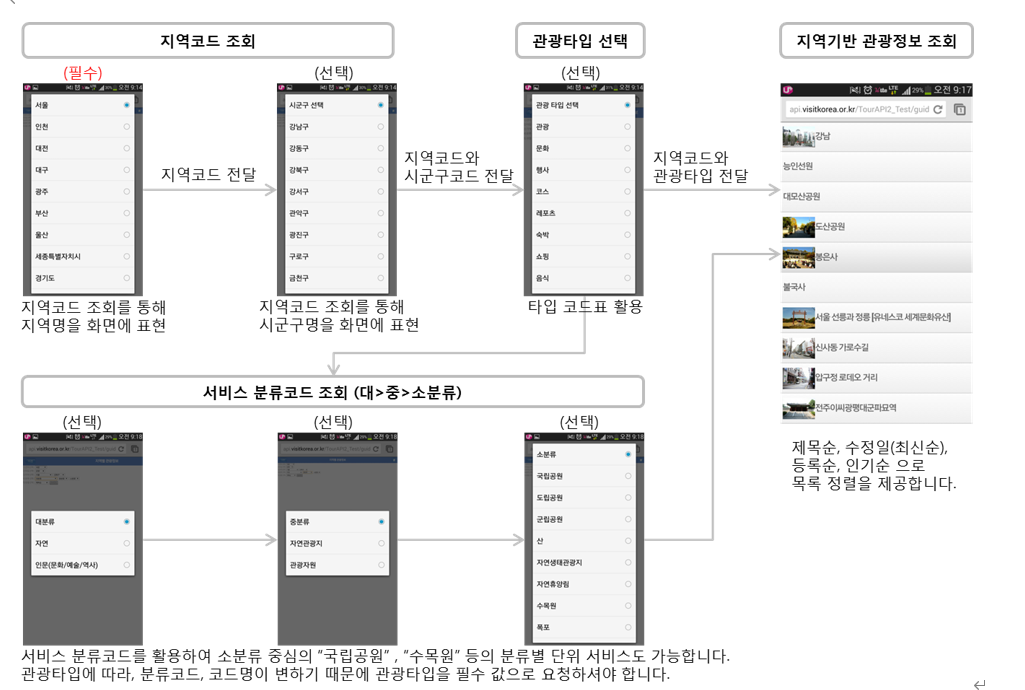 이때 지역(시/도 + 시군구), contentTypeId, 대중소 분류