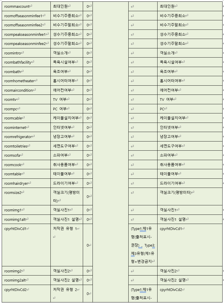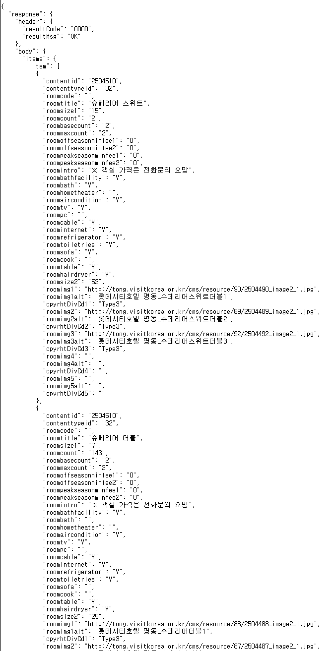 인 상세반복정보(객실정보) 조회(한페이지에 10개씩, 첫페이지 조회)를 해보자.
