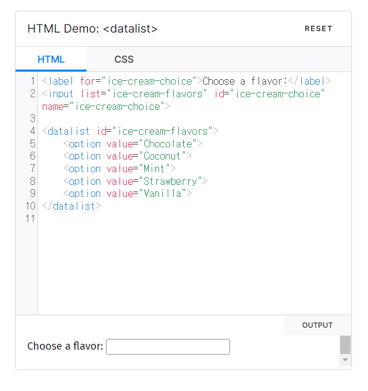 datalist 다른 컨트롤에서 고를 수 있는 가능한, 추천하는 선택지를 나타내는 option태그를 담는것이다.