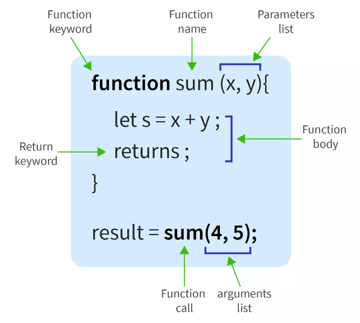 함수 선언을 위해 Keyword, name, parameter, body가 필요하다.