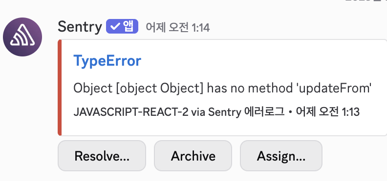 이상으로 Sentry 설정과 디스코드 연동까지 해 보았습니다. 지금까지 에러는 개발자에게만 일어나는 것이라 생각했습니다. 사용자에게 배포하고 나서 에러에 대한 시각이 더 넓어진 느낌이 들었습니다. 이제부터 사용자에게 불편함 없이 서비스를 제공하기 위해 한 층 더 나아가 보려고 합니다.