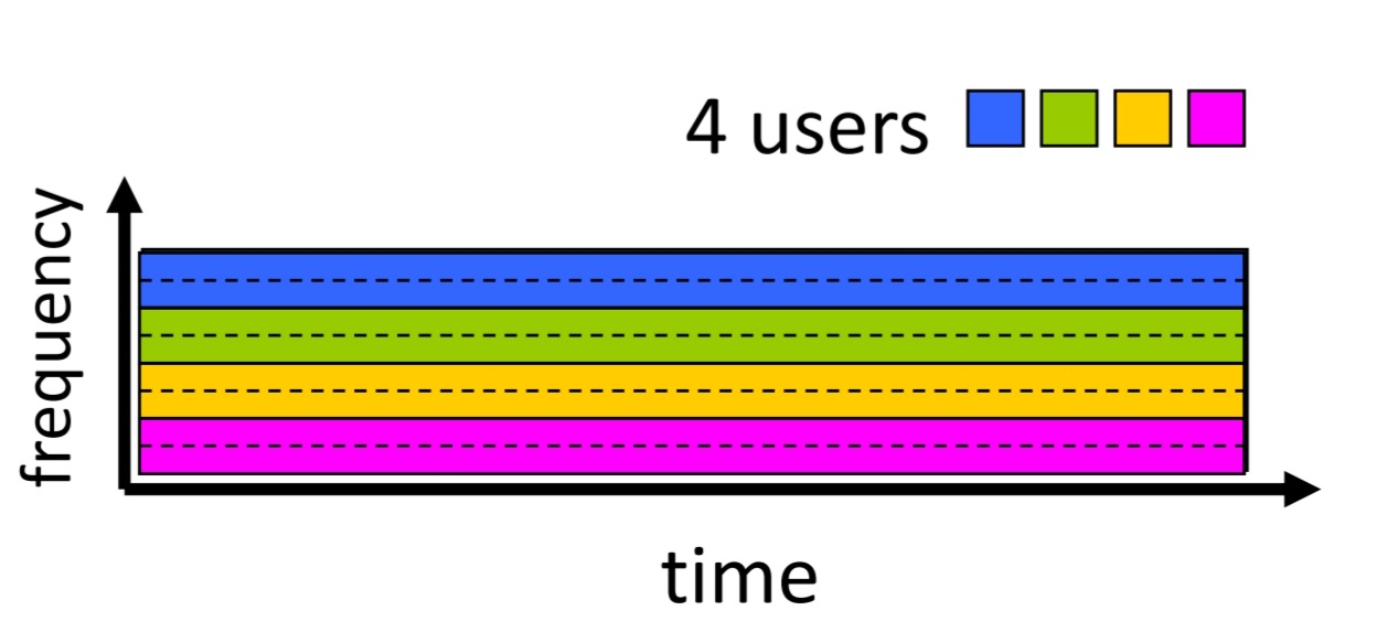 - 전자기파 주파수 대역폭을 각 유저마다 할당시킴.
