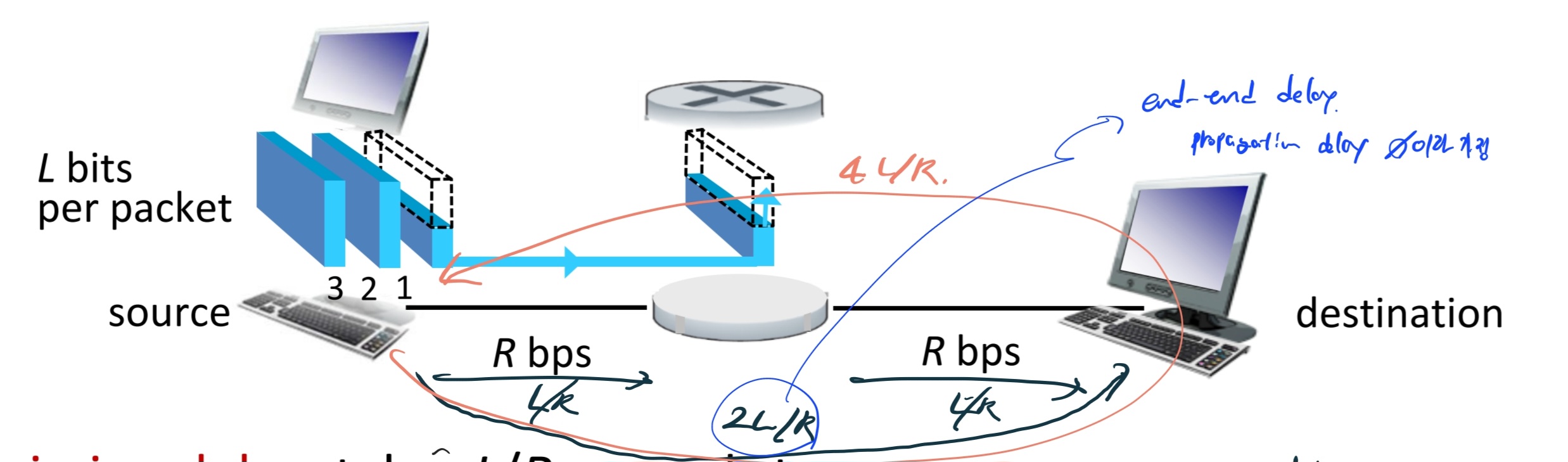 - 패킷의 arrival rate(도착속도) > transmission rate(전송속도) 일 때 적체.