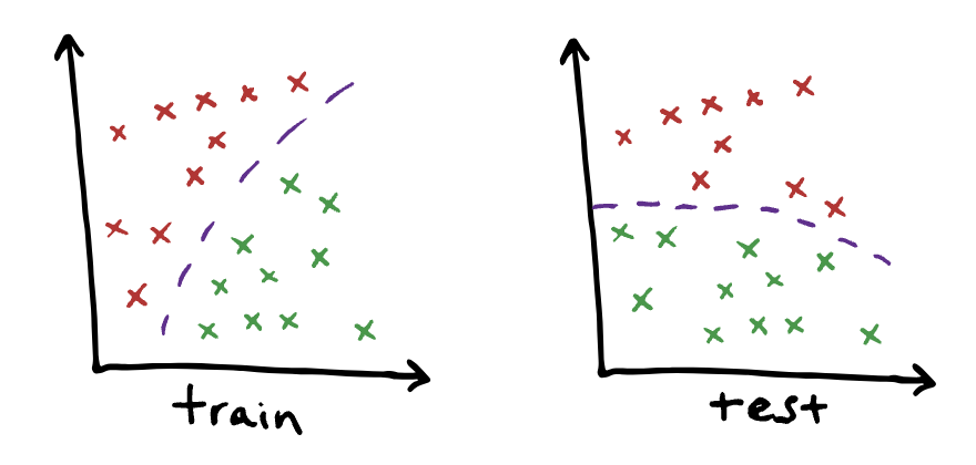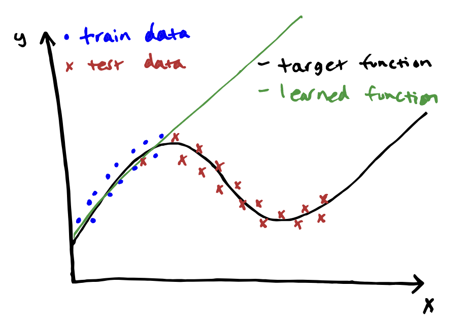 훈련 데이터와 테스트 데이터의 분포가 크게 다를 때, 학습된 모델은 훈련 데이터에 잘 맞지만 테스트 데이터에서 성능이 저하될 수 있다