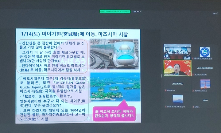 부산 방일단 대학생 상대로의 오리엔테이션이 끝난 후, JENESYS 2022 방일단 전체를 대상으로 Zoom을 통한 화상 오리엔테이션이 시작됐다. 이번 방일의 모토는 GANBARO TOHOKU (힘내라, 도호쿠)로, 미야기 현과 이와테 현을 중심으로 동일본대지진 피재지를 시찰하고, 부흥상황을 직접 보고 느끼는 의미있는 주제였다. 우리가 거주하는 숙소조차 동일본대지진 당시 피난소로 큰 역할을 했던 곳이며, 여러 의미있는 일정이 꼼꼼하게 구성되어 있었다. 자세하게 설명하고 싶지만, JENESYS 2022 방일 기간동안의 기록을 포스팅해볼 생각인만큼 각 포스팅에서 더 자세하게 설명할 수 있도록 하겠다.