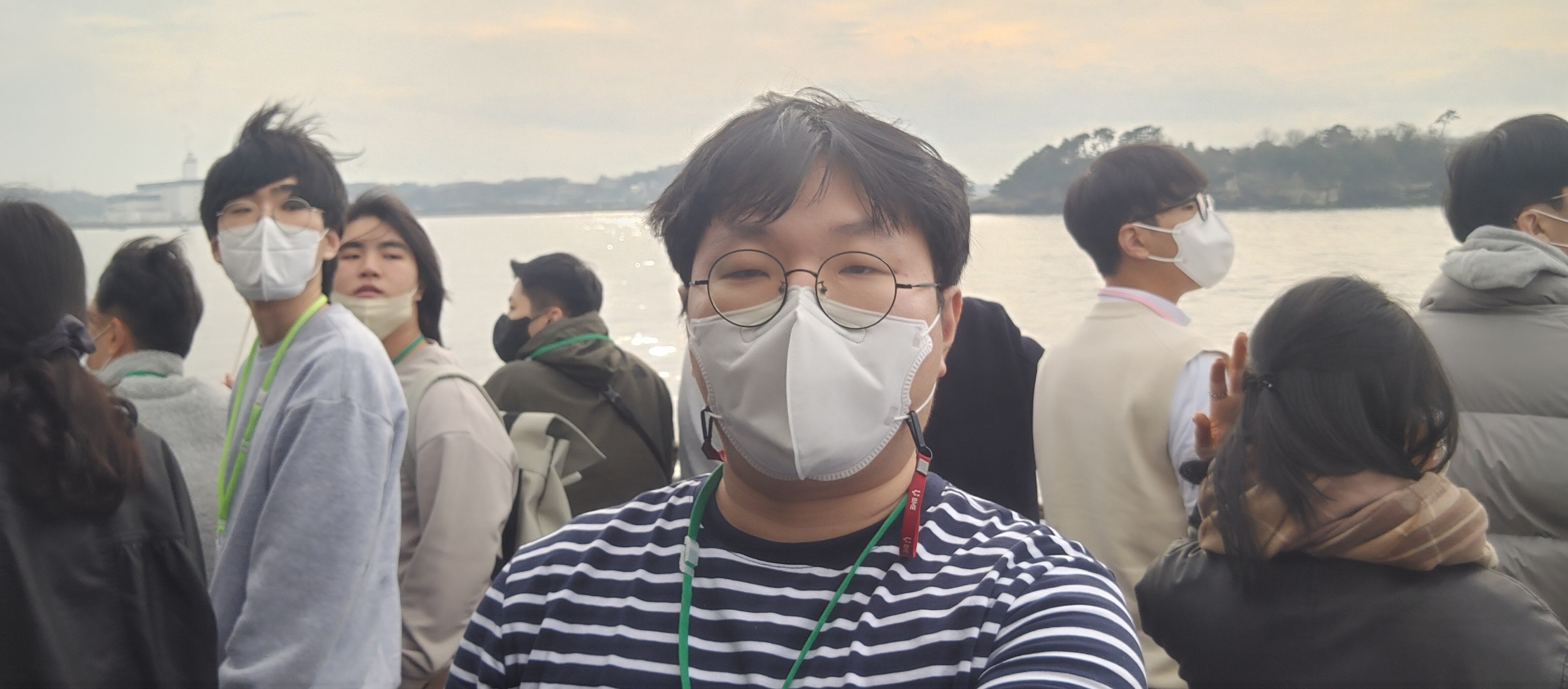 유람선에서 바다를 배경으로 한 컷