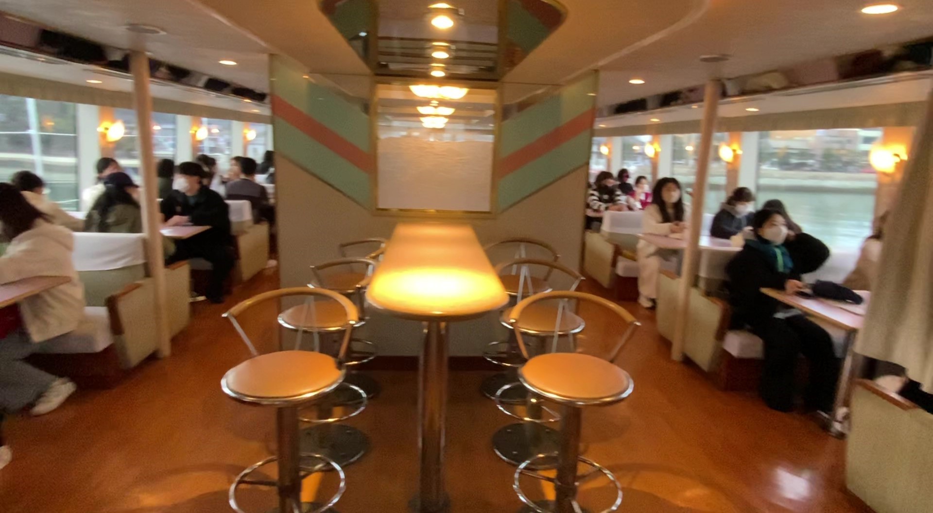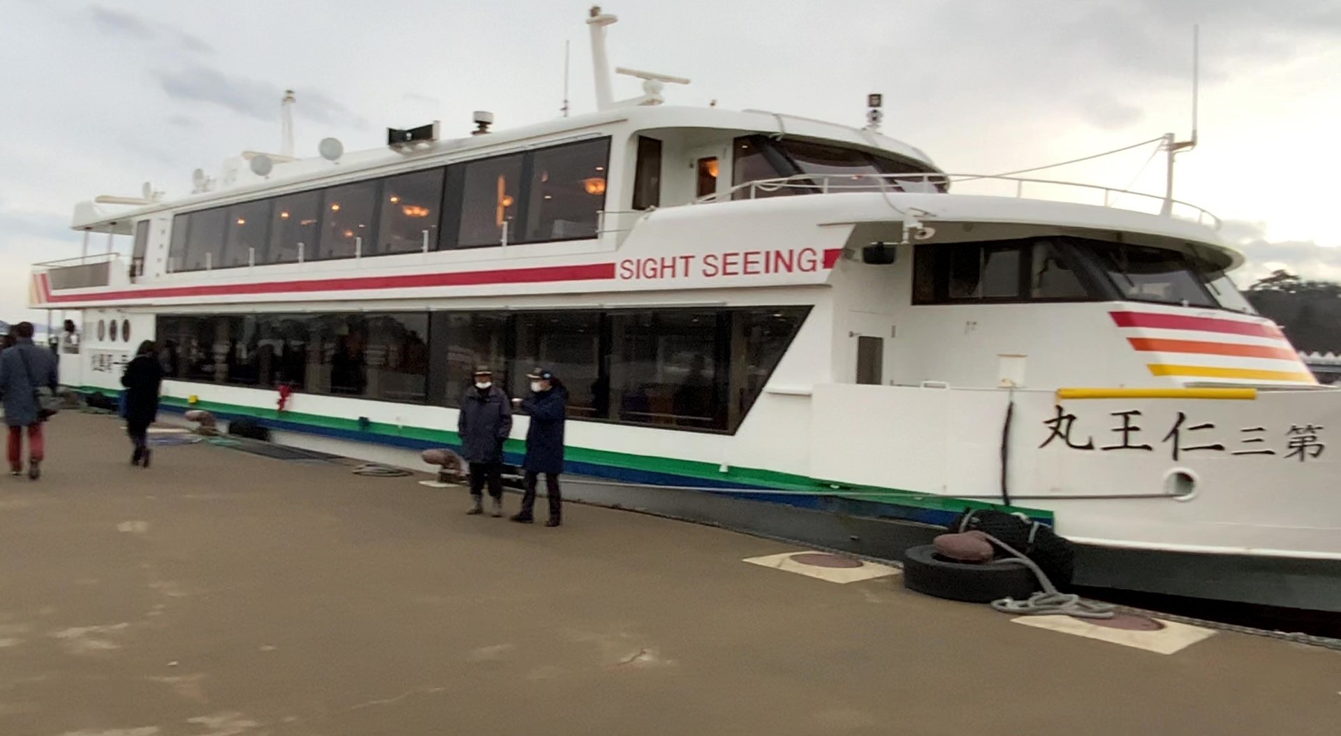 마츠시마를 둘러보기 위한 유람선 외부(위), 내부(아래)