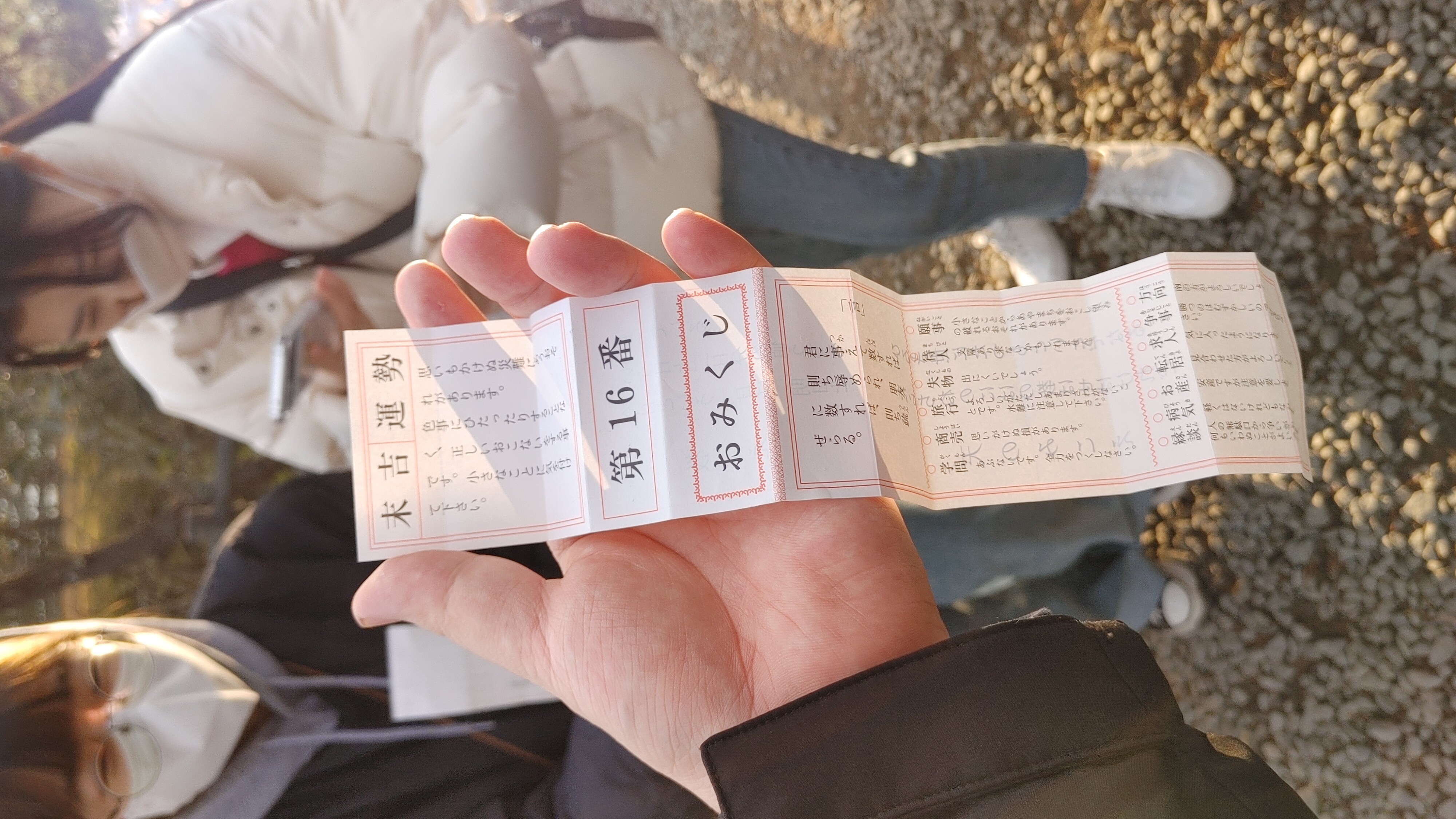 이런식으로 100엔에 운세도 뽑아볼 수 있다. 나는 말길(末吉)이 뽑혔다