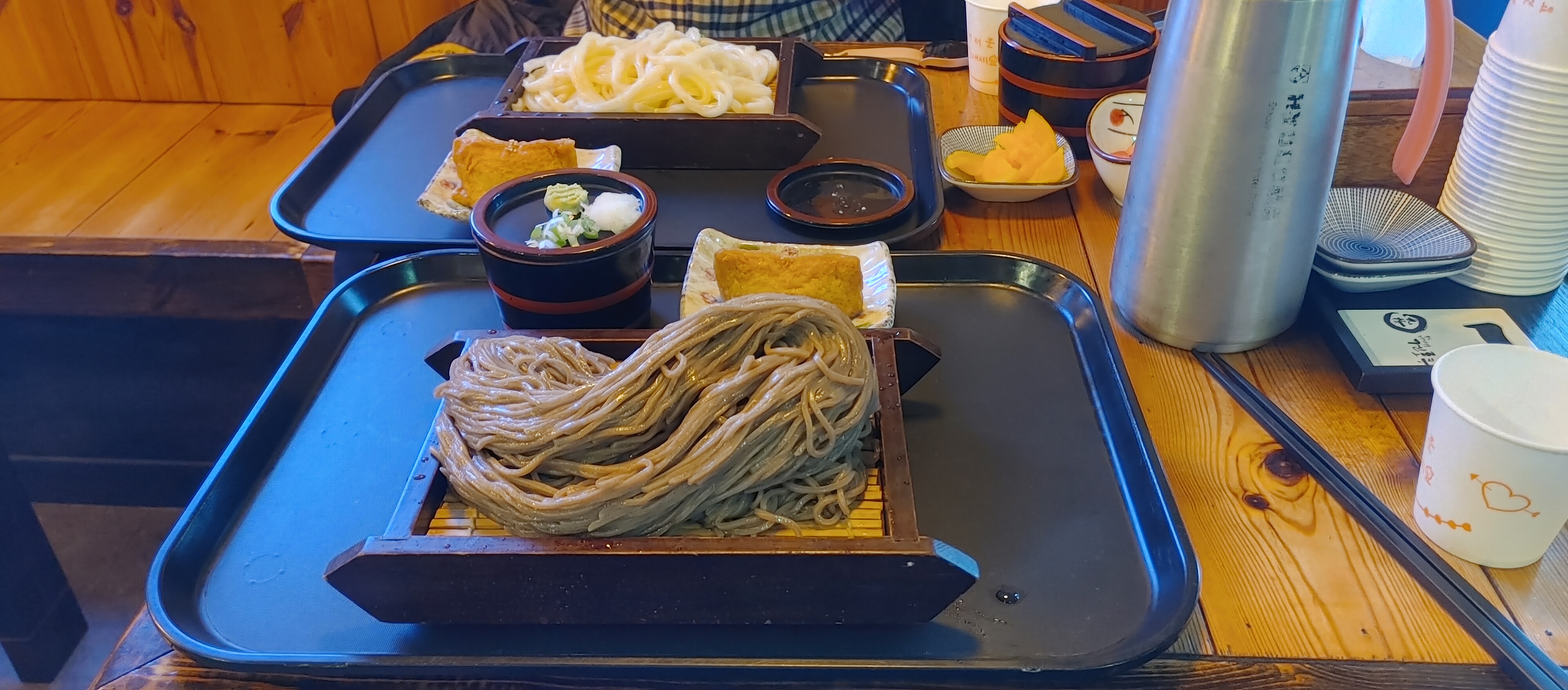 마침 다른 용무로 부산에 잠시 내려왔던 우림 선배와 만나기 위해 부산대학교로 향했고, 인근의 유명한 맛집 겐로쿠우동에서 저녁을 먹게 되었다. 의도하지는 않았지만, 서포터즈 활동을 마치고 나서는 언제나 일식을 먹게 되는 것을 보면 운명의 붉은 실까지는 아니더라도 내가 볼 수 없는 인연의 실이 있는건지도 모르겠다. 자루우동을 고른 우림 선배와 달리, 늘 먹던 자루소바를 골랐다.