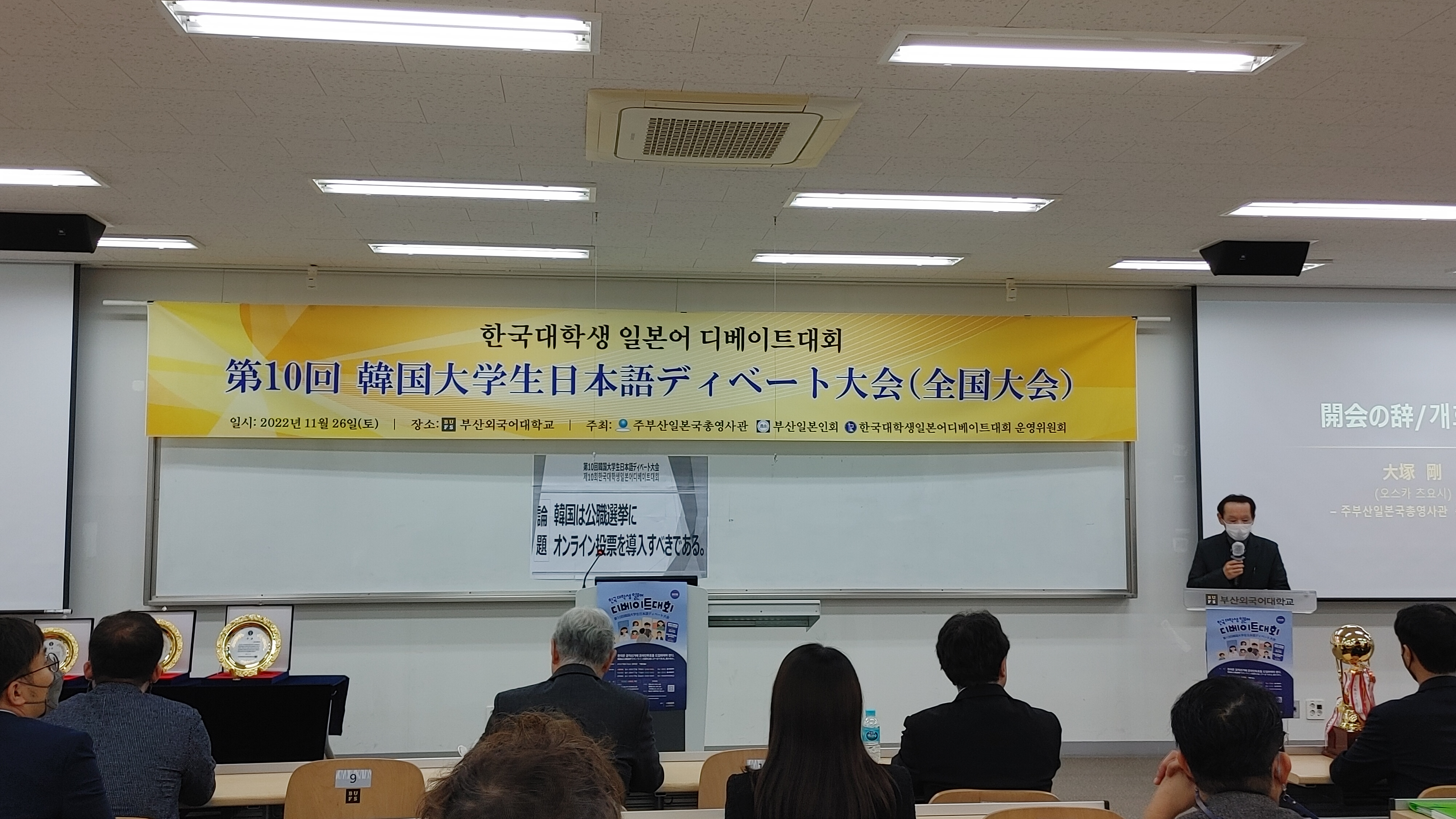 이번 제10회 한국대학생 일본어 디베이트대회의 우승은 4:1의 스코어로 건국대학교가 차지했다. 내심 동향의 부산외국어대학교 A팀이 우승하길 바라고 있었지만, 건국대학교 학생들의 실력도 출중했기에 누가 우승해도 이상하지 않다고 생각했다. 이후 건국대학교, 부산외국어대학교 팀들과도 인터뷰를 하면서 다들 바쁜 일상 속에서 시간을 쪼개서 몇 달간 정말 치열하게 달려왔다는 사실을 알게됐고, 다들 각자의 방식으로 정말 열심히 살아가고 있구나를 느꼈다.
