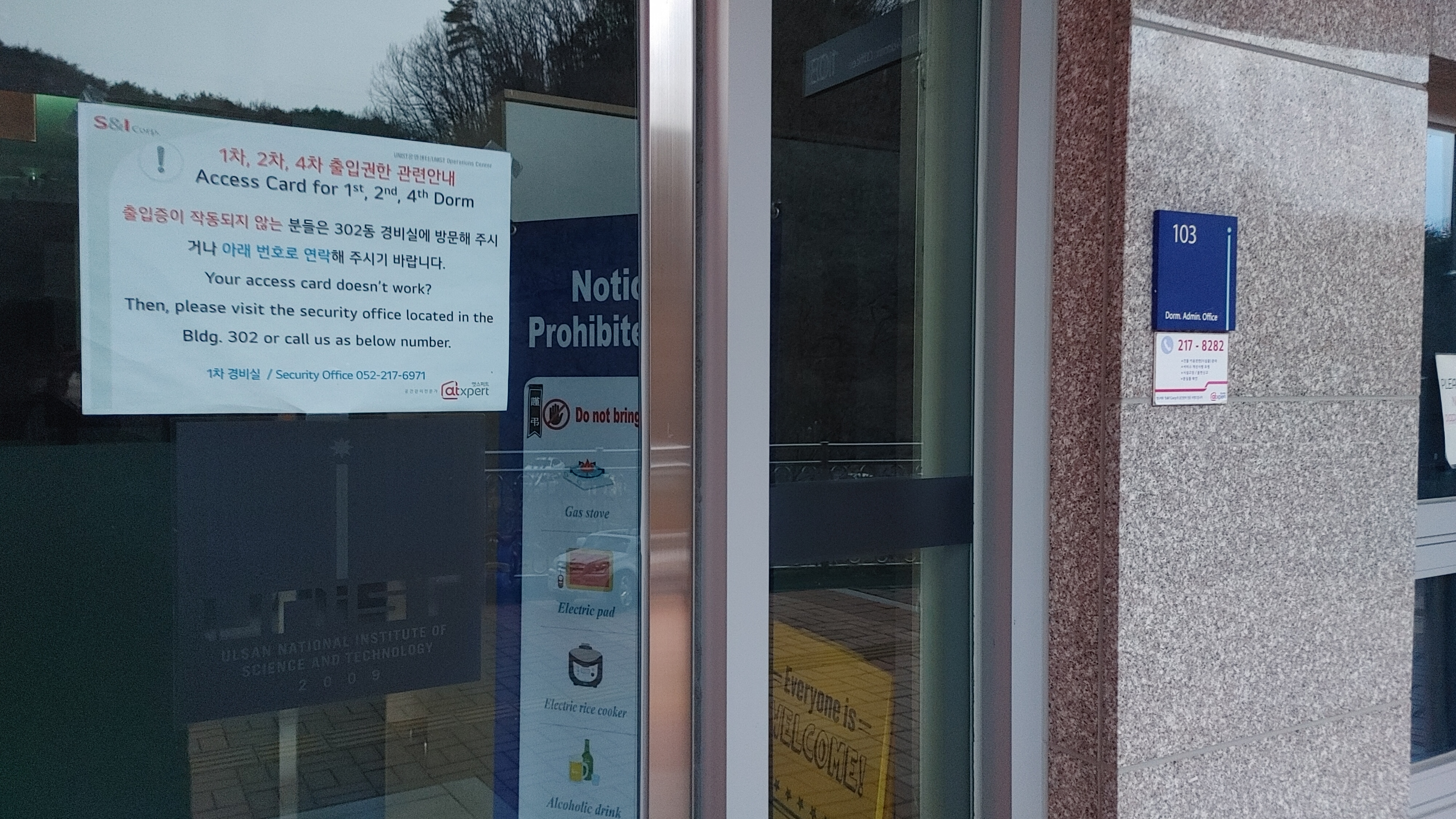 오전 7시부터 대기하고 있던 UNIST 기숙사 행정실 앞