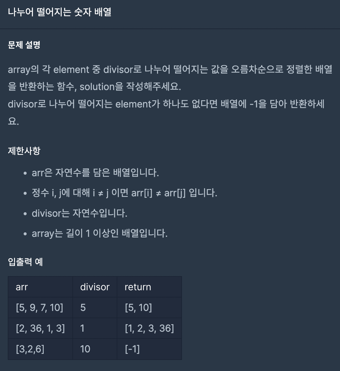 배열을 받아주고 그것을 divisor 로 나누었을때 0 인 수만 ArrayList에 넣어준다.
