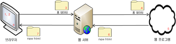 4.웹 서버는 받은 폼 데이터를 처리하기 위해 웹 프로그램으로 넘깁니다.