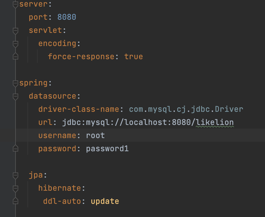 application.yml에 서버 설정과 스프링 환경변수와 jpa 사용방식을 결정할 설정들을 세팅해준다.