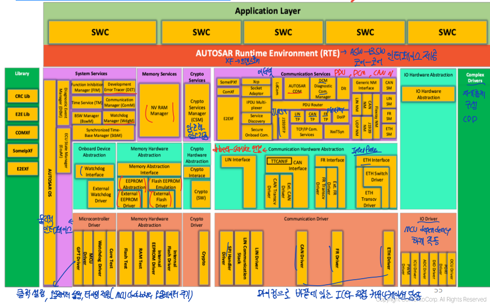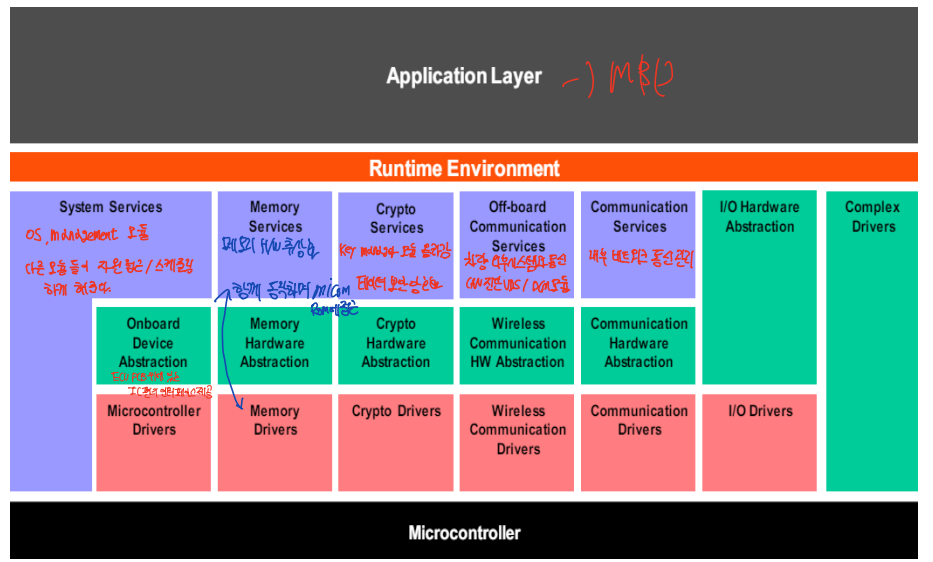 MCAL, RTE 사이에서 API로 추상화 해준다