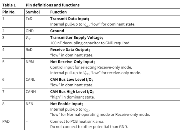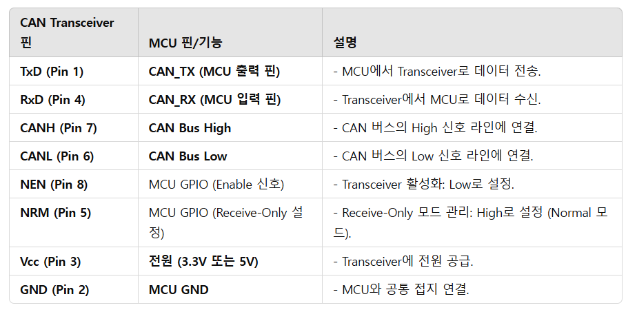 CANL, CANH는 CAN BUS와 연결, MCU와 연결 X