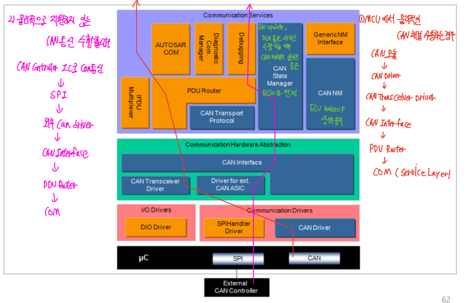 다양한 통신 프로토콜을 사용한다 ex CAN, LIN, FlexRay, Ethernet