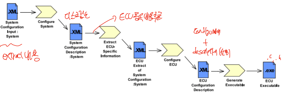 ECU와 소프트웨어 모듈의 동작을 정의하는 XML 파일들이 생성됩니다.