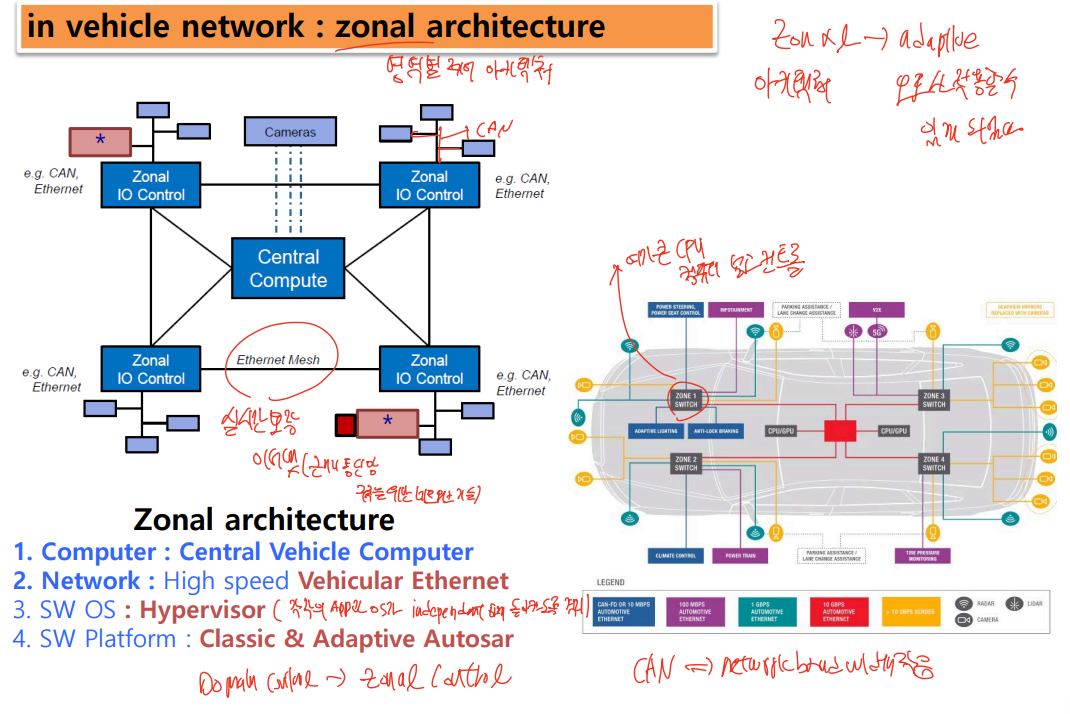 Zonal Architecture, Domain independent -> Adaptive Autosar 적용