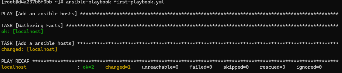 이후 ansible-playbook 명령어로 해당 야믈파을 실행