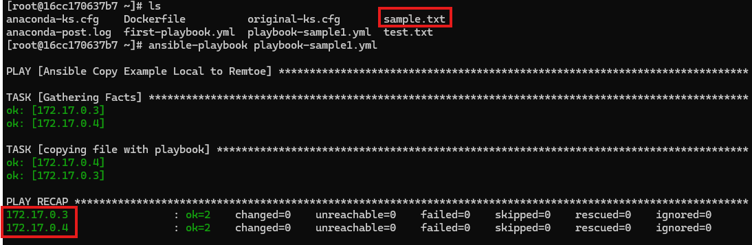 이 엔서블 플레이북이 있는 디렉토리에 sample.txt 있어야한다