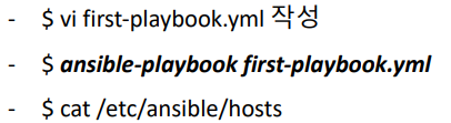 ansible 서버에서, vi first-playbook.yml 하고, 위 내용 작성