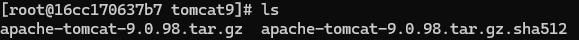 shell: cat /opt/tomcat9/apache-tomcat-9.0.98.tar.gz.sha512 | grep apache-tomcat-9.0.98.tar.gz | awk '{ print $1 }'