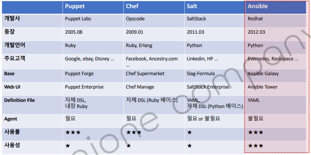 프로비저닝 도구로서, 사용자 서버에 대한 액세스 관리, 소프트웨어 설치 도구로 사용 가능