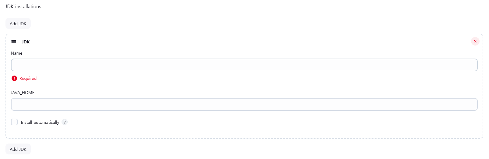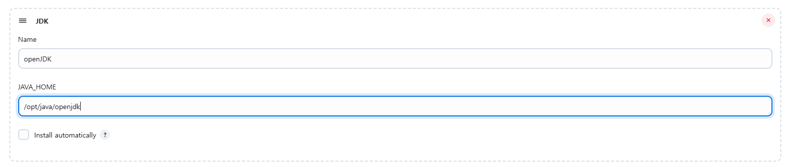 but, 도커 환경에서 젠킨스 이미지를 받아와서 컨테이너 실행을 지금 하고 있는데, 이 이미지에는 jdk가 포함되어 있는 상태라 괜찮다, 컨테이너 안에 설치 위치만 정해주자