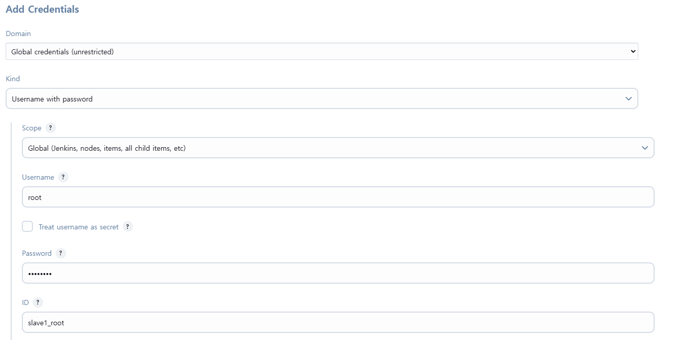 Jenkins node의 home디렉토리에서 slave1 디렉토리 만들자