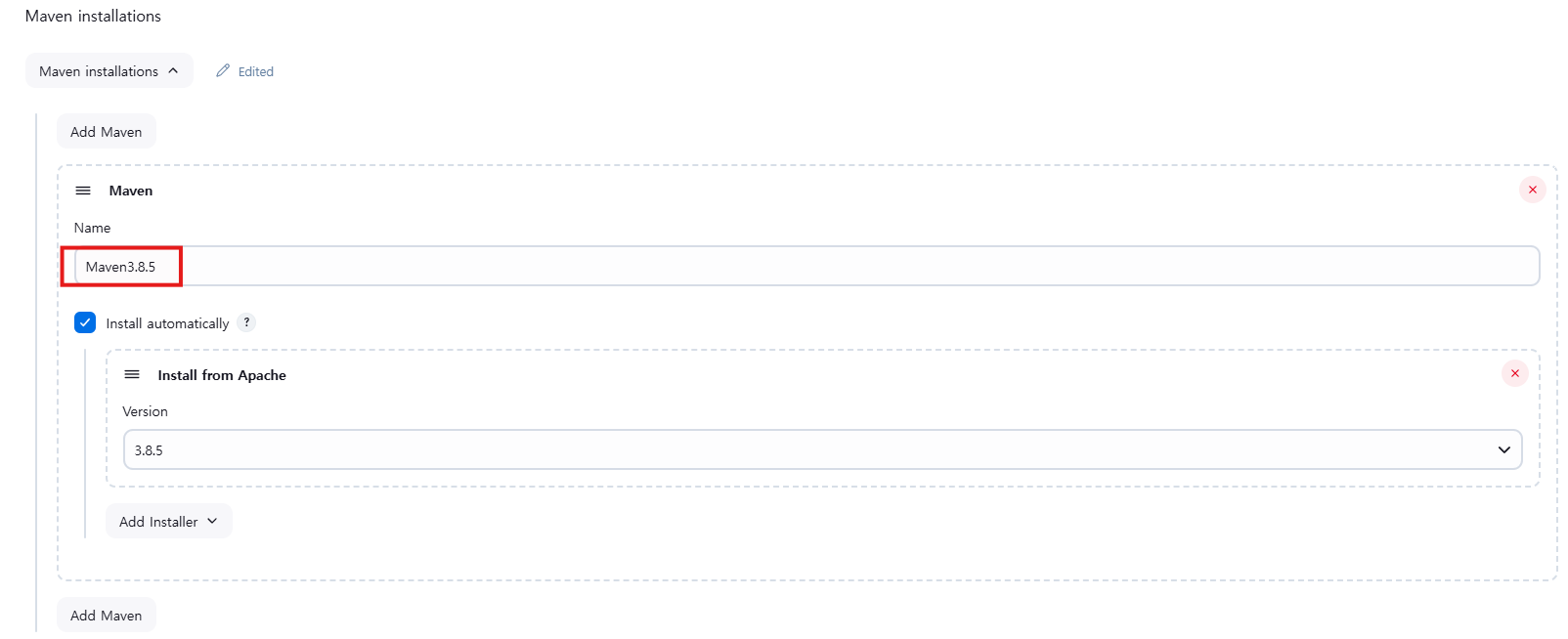 메이븐 설정, 이 'name' 은 pipeline 스크립트에 적용되니 잘 확인