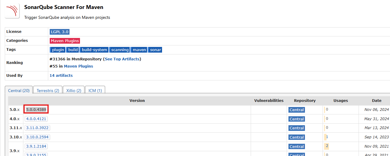 https://mvnrepository.com/artifact/org.sonarsource.scanner.maven/sonar-maven-plugin