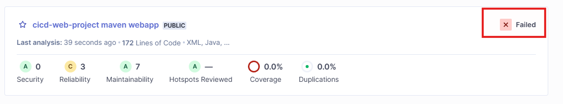 추가로 저 git에 pom.xml파일이랑 다 있어서, 저 환경에서 mvn sonar:sonar 하면 된다
