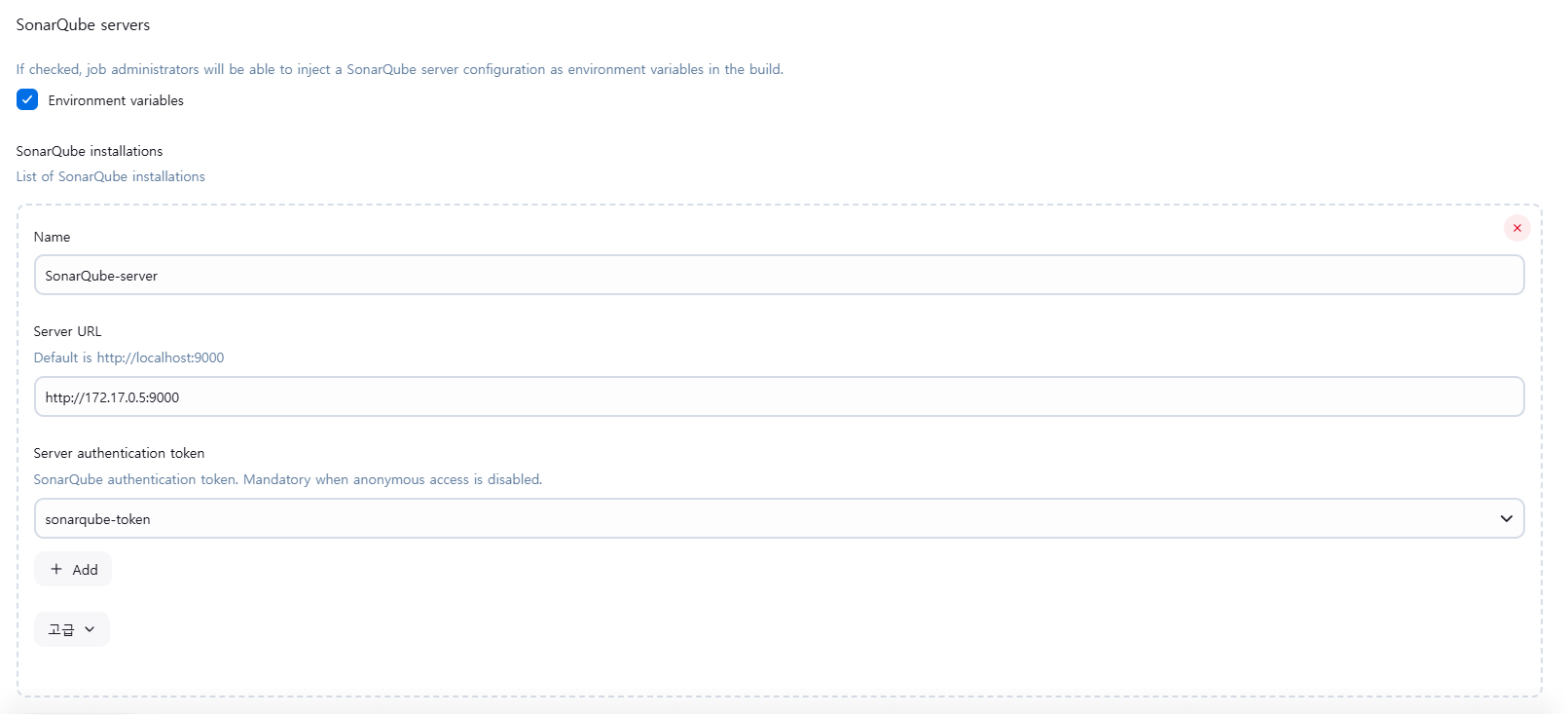 젠킨스 시스템 관리에서, 소나큐브 서버 추가
