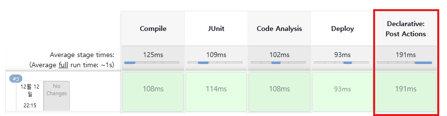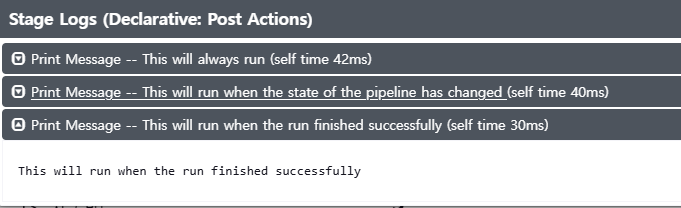 빌드가 완료되었을 때, 어떤 작접 출력할지 결정하는게 post