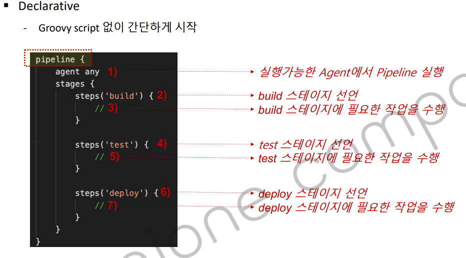 어떤 서버에 젠킨스를 설치할지 지정할 수 있는데, agent any의 경우, jenkins 서버들 중에서 어떠한 서버도 상관 없이 실행하겠다는 의미