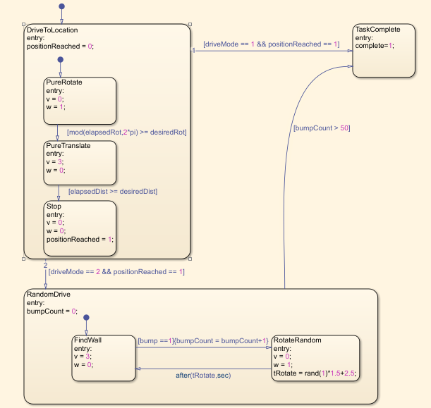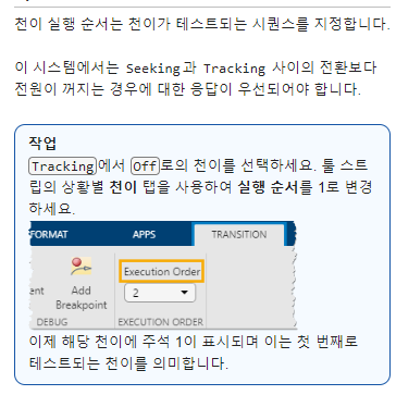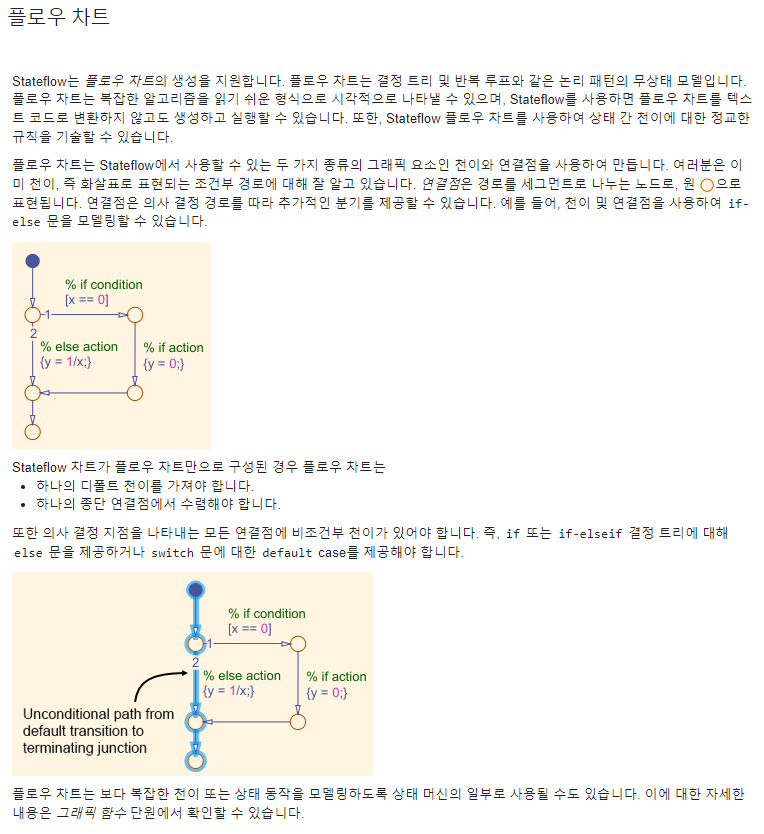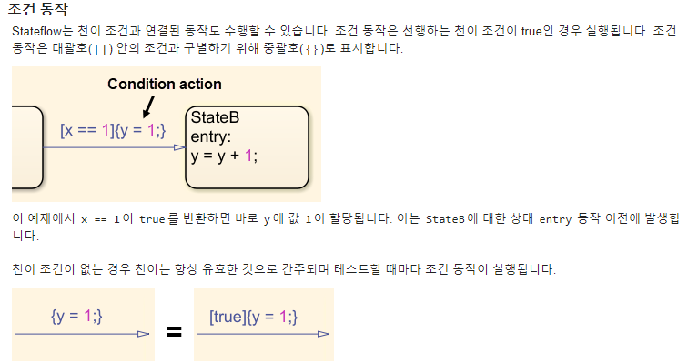 조건 동작 : 천이조건이 true인 경우 state flow가 수행하는 동작