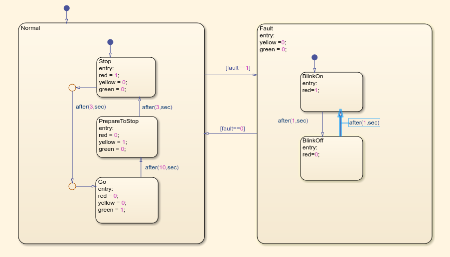 Simulink solver가 한 스텝 실행할 때 마다, 차트가 한 스텝을 실행함