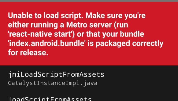 Unable to load script. Make sure you’re either running a Metro server (run ‘react-native start’) or that your bundle ‘index.android.bundle’ is packaged correctly for release.